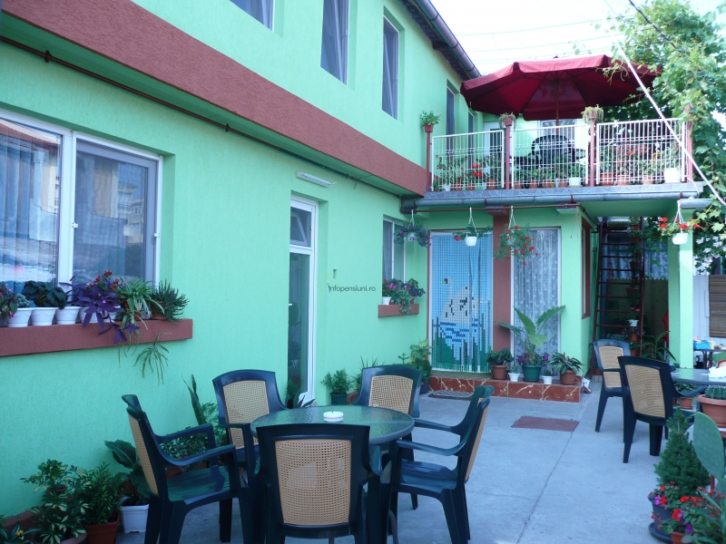 Pensiunea se afla amplasata central, in apropierea Casei de Cultura, vis-a-vis de Liceul Sportiv Nr. 2 pentru competitii sportive (haltere, tenis de masa, tenis de camp, judo, etc. ), la 5 minute cu masina de Satul de Vacanta Mamaia, si 15 min cu autobuzul, 15 minute de Plaja Modern. Terasa si curte amenajate cu flori. Oferim transport gratuit de la gara la pensiune.