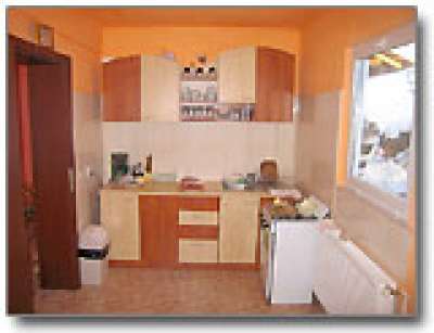 Bucatarie utilata (frigider, aragaz, vesela)