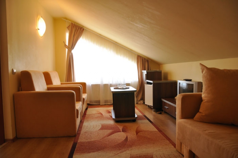 Pensiunea detine 30 locuri cazare: 2 apartamente, 10 double, 2 single, sala bar 20 locuri, salon pt. servirea mesei 60 locuri, bucatarie traditionala si internationala, parcare pentru 20 locuri