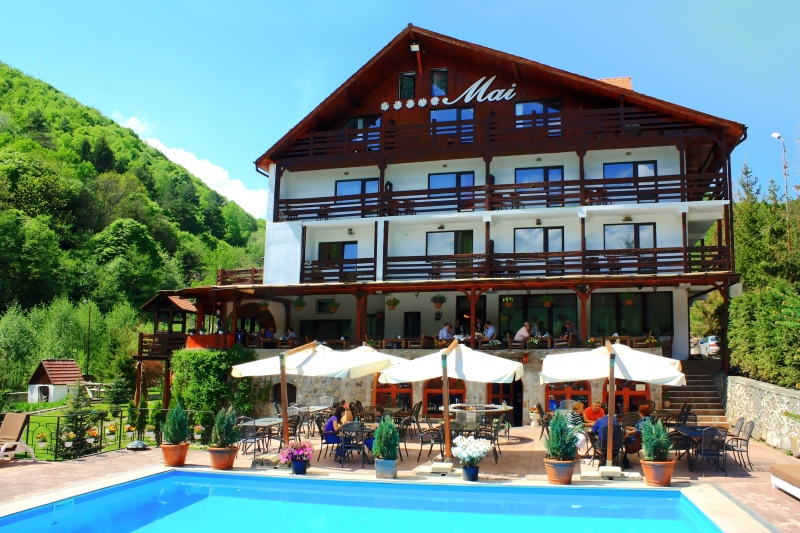 Pensiunea Mai are 2 restaurante, de 70, respectiv 100 locuri, cu o bogata oferta culinara, cu preparate atat din bucataria internationala, cat si din cea traditional romaneasca.