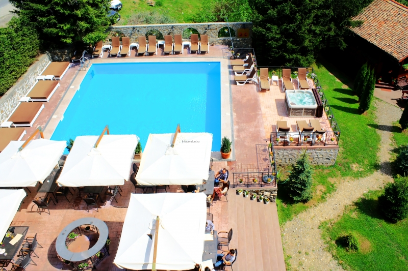 Piscina este cu circuit deschis. Pensiunea dispune si de o sauna cu o capacitate de 6 locuri.