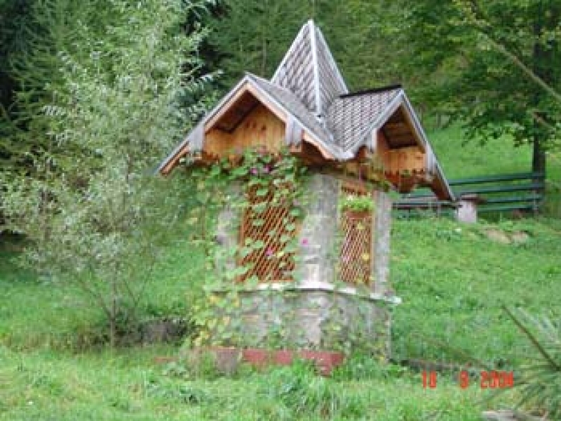 La exterior se afla un foisor cu un cuptor taranesc, un gratar si un loc pentru servirea mesei. O banca cu o masuta sunt umbrite de coroana perfecta a unui fag. O portita permite accesul spre padure pentru toti cei ce iubesc natura. Exista o parcare private pazita.